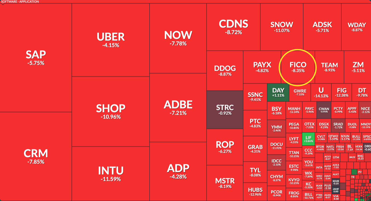 ⭐ $FICO sa dnes prepadá spolu s celým Software sektorom o ~9%.