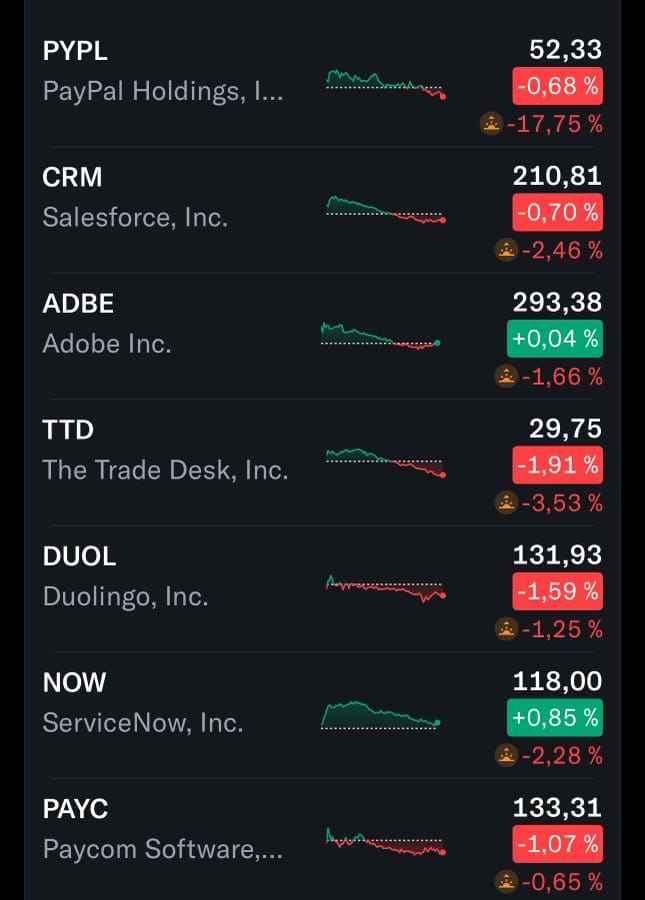 $PYPL -90% $CRM -44% $ADBE -60% $TTD -81% $DUOL -76% $NOW -50% $PAYC -75% a ďaľšie...