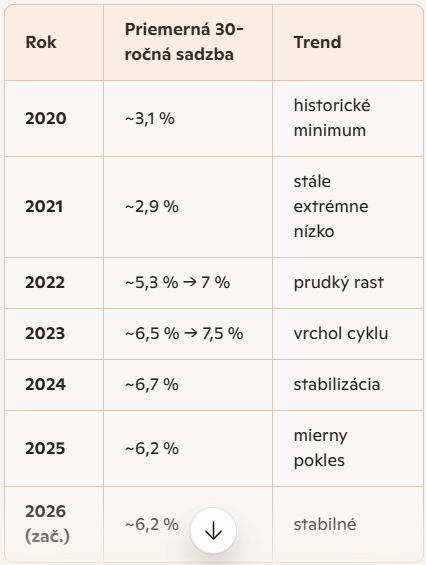 Prehľad 30 ročných hypotekárnych úrokov v USA. Pomohla AI.