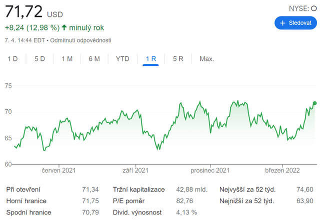 Pravidelné zvyšování dividend společnosti Realty je podpořeno jejími působivými obchodními výsledky. Rok 2021 zakončila s portfoliem více než 11 000 nemovitostí ve všech 50 státech, Portoriku, Velké Británii a Španělsku. Tyto nemovitosti jsou dobře diverzifikované, žádný jednotlivý typ nemovitosti nepředstavuje více než 9,1 % celkového nájemného. To společnosti Realty dobře posloužilo během pandemie. Když se její divadla a maloobchodní provozovny potýkaly s problémy, mohla se společnost spolehnout na nájemné z obchodů s potravinami a dalších nezbytných podniků, které zůstaly otevřené.