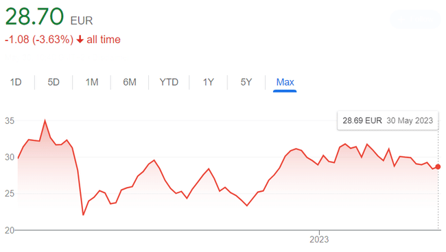 Cena je v eurách, keďže ich akcie sú kótované na nemeckej burze. V čase písania tejto správy bol výmenný kurz 1 EUR 1,07 USD. *
