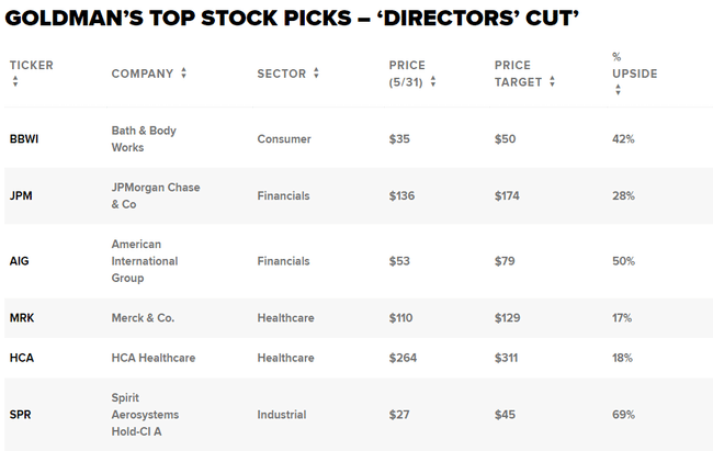 Firma získala od svých amerických analytiků hodnocení „buy“. Tento seznam se od typického seznamu nejvhodnějších akcií liší tím, že jména vybírali členové výboru Goldman Investment Review Committee, což přidává druhou úroveň analýzy.