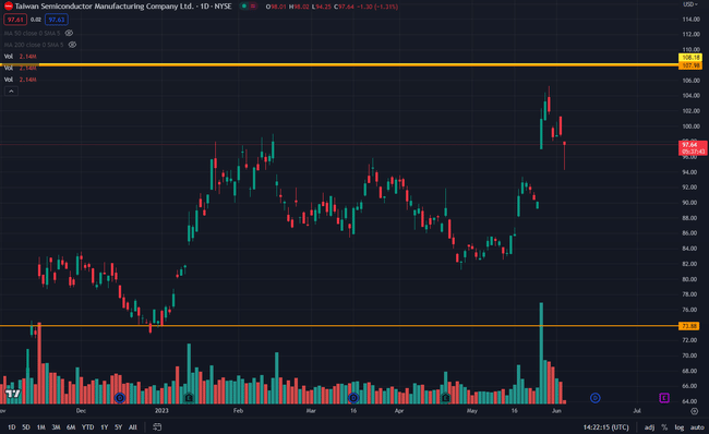 $TSM také jako jedna ze společností, která se svezla na hypu AI nyní krásně vyplnila gap, který cena vytvořila při euforii s $NVDA.