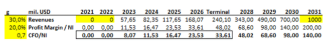 U PX G1300 jsem vycházel z tvrzení CEO, že za deset let by měli mít na tržbách z PX G1300 kolem 1 mld. USD tržeb za stejných parametrů jako mají u SWRO. Prezentováno v tabulce níže.