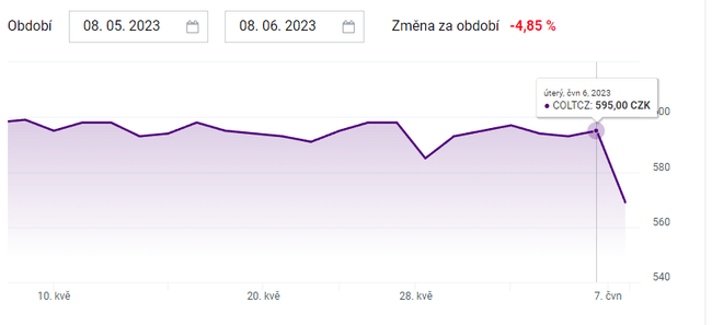 Včera akcie Colt CZ na PSE uzavřely na hodnotě 595 Kč. Dnes kvůli této zprávě cena dost klesla a aktuálně je na 567Kč.