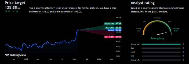 Společnost si bude účtovat v průměru asi 24 250 dolarů za lahvičku Vyjuveku. Celková roční útrata 1 pacienta (pokud bude chtít podstoupit celou léčbu) se bude pohybovat kolem 485 000 USD (při zohlednění vládních slev). Za předpokladu (nerealistického) nejlepšího scénáře, kdy Krystal Biotech zvládne vyléčit všech 3 000 amerických pacientů, mohla by společnost vydělat asi 1,5 miliardy dolarů.