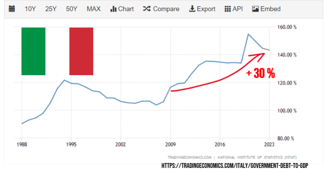 Př.: Itálie zvedla svůj dluh vůči HDP o 30 procentních bodů.