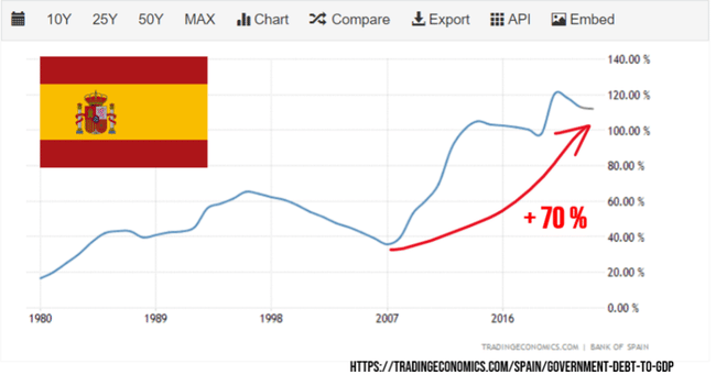 Španělsko zvedlo dluh vůči HDP o 70 procentních bodů.