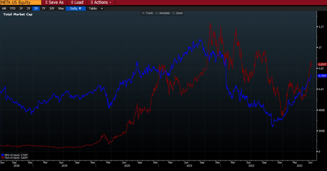 Súboj v klietke medzi Markom Zuckerbergom a Elonom Muskom síce ešte nie je definitívne potvrdený, ale v rámci súboja veľkosti ich firiem mierne vedie Tesla s kapitalizáciou 839 miliárd USD, zatiaľ čo hodnota Mety je 730 miliárd USD.
