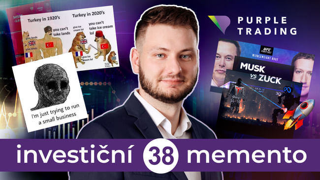 Blíží se nový souboj těžkých vah? Určitě jste zaznamenali výzvu Elona Muska na souboj v kleci s Markem Zuckerbergem. Na koho byste si vsadili? Podíváme se na srovnání těchto legendárních byznysmenů, po kterém jistě budete mít svého favorita. Podíváme se také do Turecka, kde centrální banka po dlouhé době zvýšila úrokové sazby. Jejich efekt se však zatím mine účinkem a lira dále oslabuje. Roky hrůzoekonomiky prezidenta Erdogana se tak na její síle podepisují i nadále. Kam až lira může oslabit? To a mnoho dalšího se dozvíte v dnešním díle Investičního Mementa!
