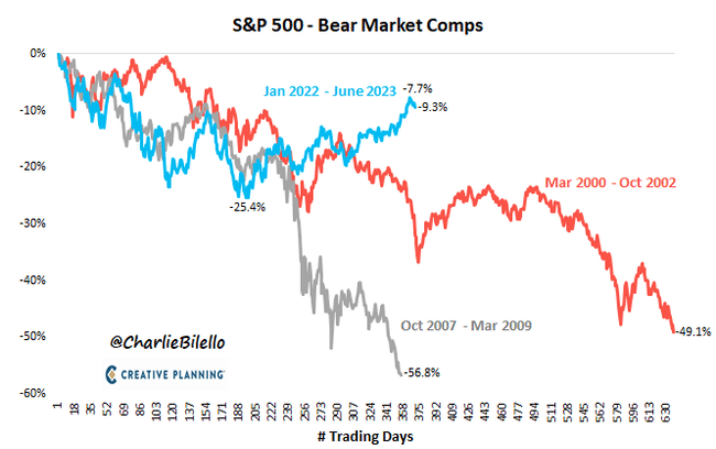 Vrchol indexu S&P 500 v lednu 2022 oproti vrcholům v říjnu 2007 a březnu 2000. 😏