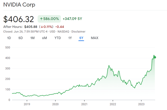 V čase písania tejto analýzy (26.6.2023) zaznamenali akcie firmy NVIDIA mierny pokles 0,11% hodnoty.* Avšak, z dlhodobého hľadiska sú akcie tejto technologickej firmy na kontinuálnom vzostupe, trend ktorý je posilňovaný partnerstvami ako je ten s firmou Snowflake.
