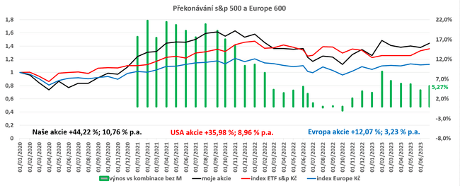10,76 % ročně. Takového výnosu dosáhly akcie v mém portfoliu od 1.1.2020 do 30.6.2023. Za stejnou dobu dosáhly běžné americké akcie ročního výnosu 8,96 % a běžné evropské akcie pouze 3,23 % ročně.