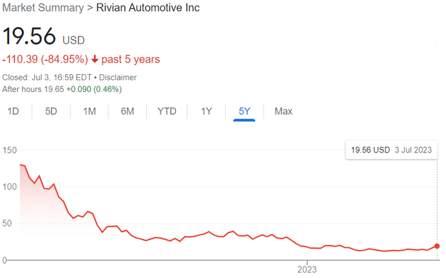Pohyby akcií firmy Rivian od vstupu na akciové trhy. (Zdroj: Google Finance) *