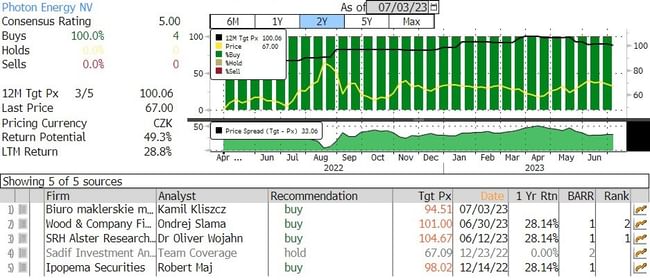 Jaký názor mají na akcie ČEZ, CTP, Photon Energy a společnosti Pilulka Lékárny domácí a zahraniční analytici? Jaké jsou jejich dvanáctiměsíční cílové ceny a jak znějí jejich aktuální investiční doporučení? Nabízíme jejich přehled, jak jej k 3. 7. 2023 shromáždila agentura Bloomberg.