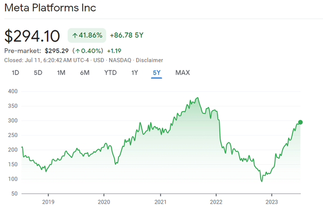Akcie spoločnosti Meta po ohlásení registrácie 100 miliónov používateľov v stredu 5. júla ráno vzrástli takmer o 4 % na 295,29 USD, čo predstavuje najvyššiu cenu za akciu tohto sociálneho média od konca januára 2022. [1]