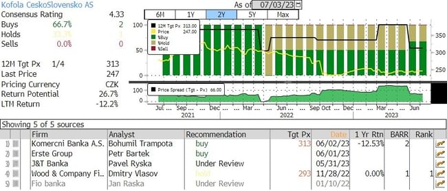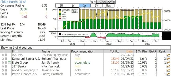 Jaký názor mají na akcie Colt CZ Group, Kofoly ČeskoSlovensko a Philip Morris ČR domácí a zahraniční analytici? Jaké jsou jejich dvanáctiměsíční cílové ceny a jak znějí jejich aktuální investiční doporučení? Přehled agentury Bloomberg.
