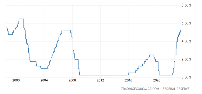 Trh má pocit, že zvýšením sazeb o 500 bazických bodů toho udělal Fed více než dost, ale ve většině ekonomických cyklů musela centrální banka USA ve skutečnosti vynaložit prostředky odpovídající alespoň nominálnímu HDP, jinak neutlumila ekonomickou aktivitu tak, aby to ulevilo inflaci a napjatému trhu práce. Americká monetární politika není v současnosti nijak přísná, pouze se vrátila k normálu.