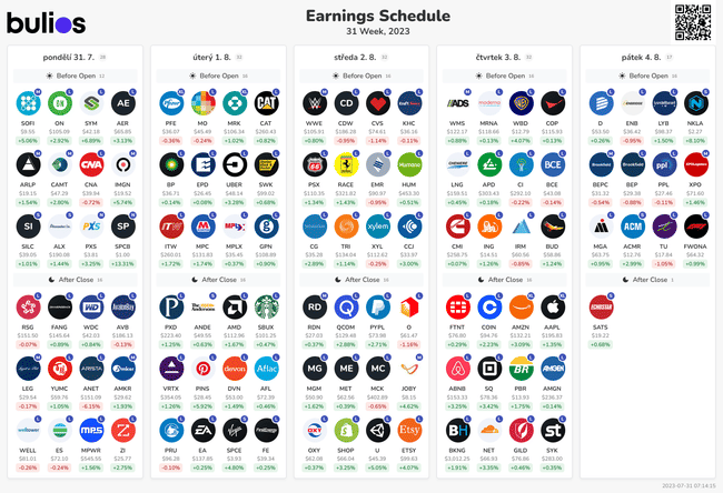 Určitě se podívám na výsledky Applu, farma společností a taky mě zajímá jak si vedla SoFi.