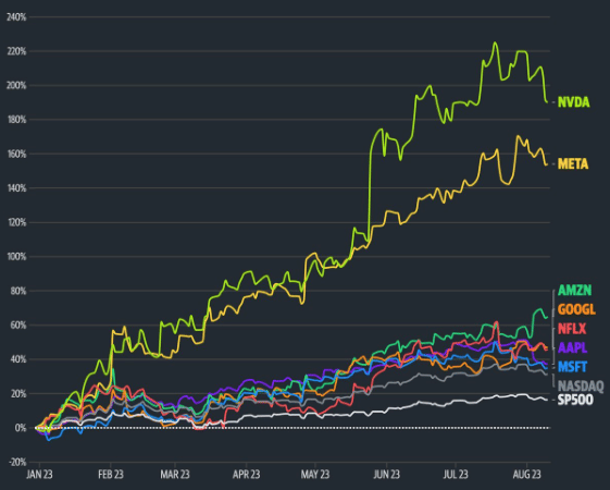 Technologické akcie jsou za letošní rok o desítky %, některé i o více jak 100% nahoře. Například akcie $META jsou za letošní rok nahoře o 140% a akcie $NVDA o 180%. Čím dál tím více mě mrzí, že jsem nějaké tech. akcie nekoupil dříve a nenakoupil jsem jich více. Ovšem nakupoval jsem akcie $AAPL na 133$ a poté jsem ještě kupoval akcie $GOOGL na 98$.