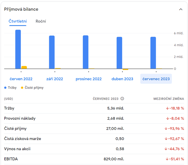 Též jsem se o tuto společnost moc nezajímal, ale asi je to dobře :). Ty meziroční změny nevypadají dobře a ten čistý příjem také ne.