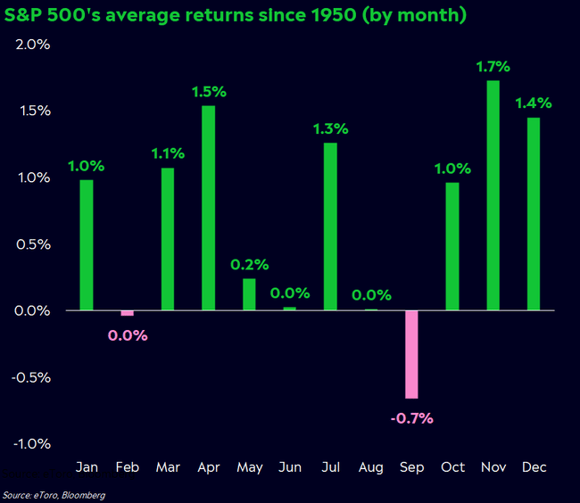 Srpen navzdory ne až tak hluboké ztrátě nicméně potvrdil svou sezónní slabost. Ta má přitom tendenci v září kulminovat. Býci tedy možná budou mít ještě co dělat, než přijde (opět pouze historicky) slibný závěr roku se všemi těmi Halloweeny, Santy a dalšími.