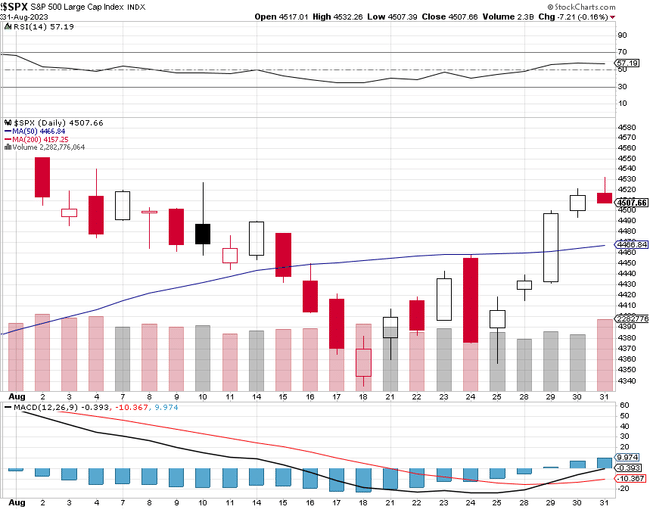 Díky vývoji v uplynulém týdnu ale S&P 500 uzavřel srpen nad 50denním klouzavým průměrem.