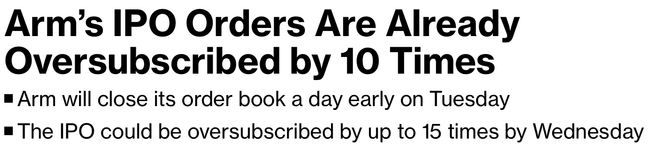 - Zájem o IPO převyšuje očekávání a banky, které si firma ARM vybrala na úpis akcií musely ukončit přijímání objednávek o den dříve, než se plánovalo, kvůli velkému zájmu. ✅