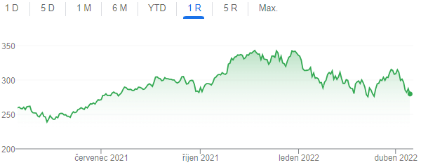 První akcie, která je z obou rozhodně více bezpečná je Microsoft $MSFT. Akcie společnosti se letos propadly o více než 15 % a akcie jsou téměř 20 % pod svým 52týdenním maximem. A to i přesto, že společnost vykázala rekordní výsledky a zveřejnila velké novinky v oblasti fúzí a akvizic.