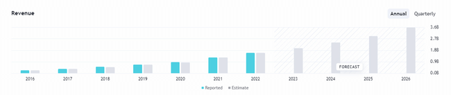 Tržby a volné peněžní toky za posledních 12 měsíců raketově vzrostly a dosáhly 1,7 miliardy a 530 milionů dolarů. Tento rychlý růst je v plánu i do budoucna a zdá se být alespoň dočasně udržitelný.
