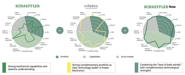 Akviziční apetit německé společnosti po řadě nákupů menších hráčů, jako je ECO-Adapt SAS s produkty v oblasti optimalizace spotřeby energie, podíl ve startupu up2parts zabývajícím se digitalizací výroby s pomoci AI nebo v nízkoemisním producentovi oceli H2 Green Steel neutichá ani teď. Po obchodech v řádu desítek, maximálně stovky milionů eur přichází poměrně větší sousto, a to plánované převzetí společnosti Vitesco Technologies Group AG. Z pohledu velikosti transakce jde o společnost identické velikosti (tržní kapitalizace), jaké dosahuje samotný Schäffler (tedy přibližně 3,6 mld. EUR).