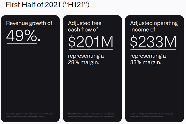 Aby bylo zcela jasno, s těmito čísly souhlasím. Dovolte mi to zdůraznit několika fakty. Za prvé, z hovoru k výsledkům za rok 2021...Takže za 1. pololetí jsme zvýšili tržby o 49 %, vytvořili jsme 28% marži upraveného volného peněžního toku a 33% upravený provozní zisk. Počet našich komerčních zákazníků vzrostl sekvenčně o 32 %, od začátku roku je to nárůst o 61 %. Naše komerční tržby v USA vzrostly meziročně o 90 %.