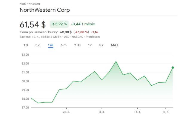 Druhá akcie, která bude generovat slušný příjem je pro dnešek NorthWestern $NWE. To je také známé jako NorthWestern Energy, poskytující elektřinu a zemní plyn v USA.