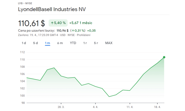 - Akcie $LYB se od začátku letošního roku vrátily o 10,5 %. V současné době podporuje vysoký dividendový výnos ve výši 4,45%.