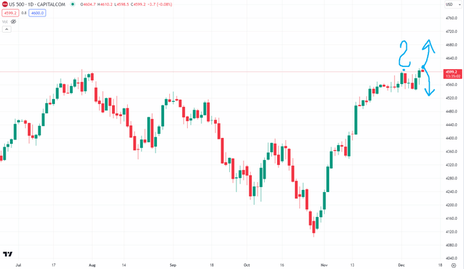 Ve středu bude zasedat FED. Na toto zasedání trh už dlouho čeká. Bude zveřejněno, zda se budou úrokové sazby zvyšovat nebo jestli zůstanou na aktuální hodnotě 5,50 % jak trh očekává. Bude také zveřejněna ekonomická projekce FEDu na další rok. Nakonec budou tato data odprezentována na tiskové konferenci ve 20:30.