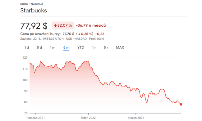 $SBUX je aktuálně o 33% dole ze svých hodnot z konce minulého roku.