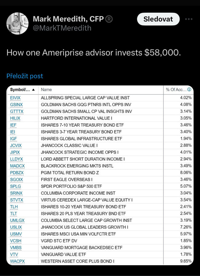 Filip Dvořák @flpczech 1y Takhle vypadá v praxi něco čemu se říká “diworsification”. A ještě od finančního poradce za tučná feečka 🤦♂️ 5 Sdílet Facebook LinkedIn Messenger Twitter WhatsApp