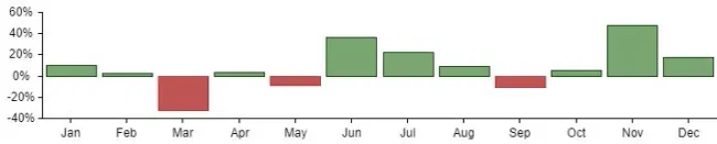 Jak ukazuje výše uvedená sezónní výkonnost vůči indexu S&P 500 $SPY, společnost Nio $NIO v září obvykle dosahuje horších výsledků. Od října do února však akcie zase dosahují lepších výsledků než index.