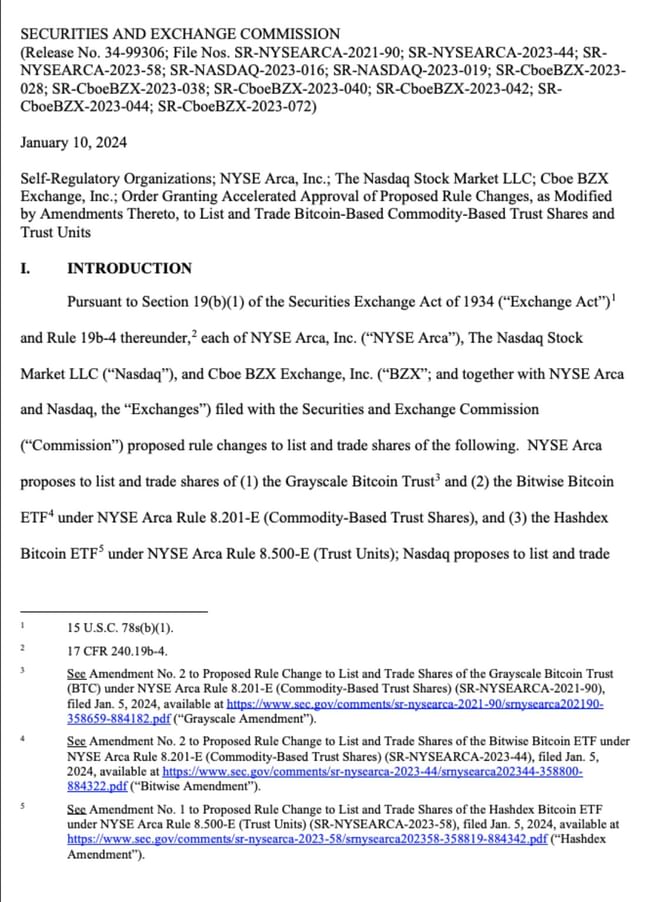 While we approved the listing and trading of certain spot bitcoin ETP shares today, we did not approve or endorse bitcoin. Investors should remain cautious about the myriad risks associated with bitcoin and products whose value is tied to crypto.[8]".