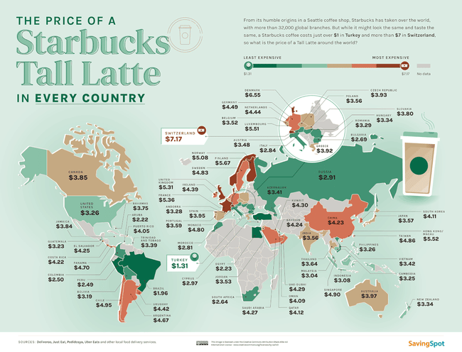 Filip Dvořák @flpczech 1y Nedávno se tu řešily Starbucks $SBUX tak pro zajímavost přihazuju grafiku z Visual Capitalist kolik stojí průměrné kafe v různých zemích :) 6 Sdílet Facebook LinkedIn Messenger Twitter WhatsApp