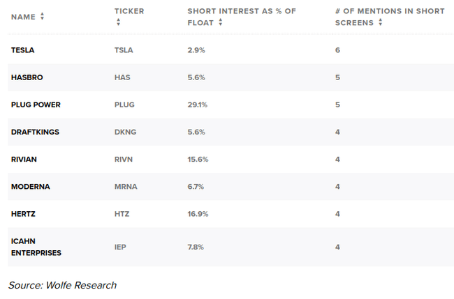 Bez ohledu na to, jakým směrem se trh bude dále ubírat, analytici Wolfe Research si myslí, že existují akcie, které by mohly být skvělým cílem pro short. Prodej akcií na krátko, tzv. short, spočívá v tom, že si investor vypůjčí akcie za stanovenou cenu s očekáváním, že cena klesne, což mu umožní odkoupit je zpět se ziskem.