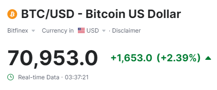 Hranice 70k USD na $BTCUSD je překonána a během pár minut jsme na 71K, Vítejte ve světě FOMO :) Takže se ještě v pozici nějaký čas udržím :)