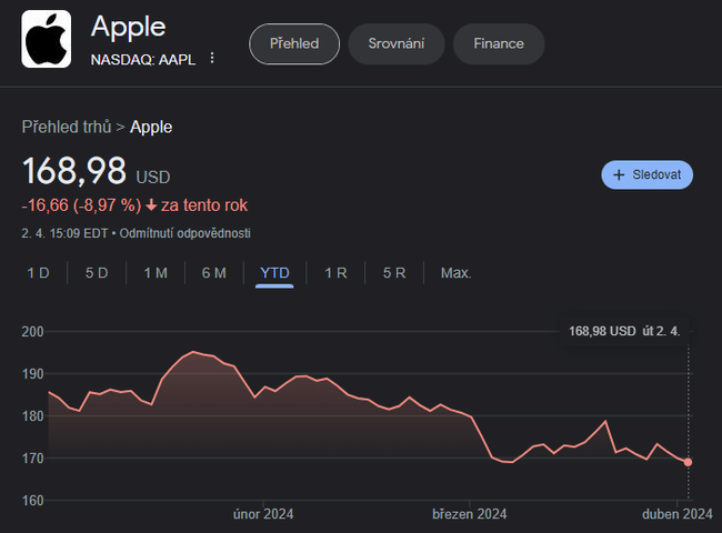 Zatímco poslední půl rok velké techy rostou, Apple ztrácí skoro až 20 % od svých vrcholů. Je éra Applu u konce nebo se znovu vzchopí a přijde s dalším „iPhonem“? 🔄