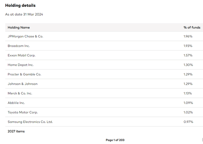 $VYHA zde:https://www.vanguardinvestor.co.uk/investments/vanguard-ftse-all-world-high-dividend-yield-ucits-etf-usd-distributing/portfolio-data (dole na stránce výpis pozic, ale nejde stáhnout).