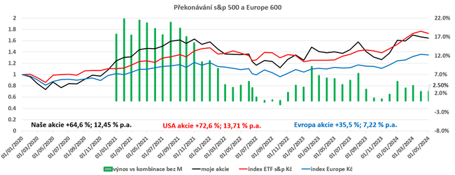 Moje akciové portfolio zhodnotilo o 64,6 %, tj. 12,45 % ročně,