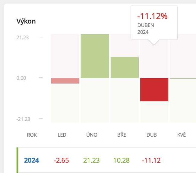 To k tomu prostě patří, taky jsem za duben výrazněji v mínusu a tak dva předchozí plusy nejsou tak vidět, ale tak rok ještě nekončí a chce to být trpělivý, tak pevné nervy přeji. 👍 ...jediné tedy k portfoliu tvému, já osobně se tedy snažím nemíchat akcie a krypto dohromady právě díky té volatilitě a ty pohybu na BTC jsou pořád dost veliké a tak mohou narušovat nehezky akciové portfolio. Ale samozřejmě každý má svoji strategii a způsob, takže proč ne a teď to hold jen vydržet. 😊