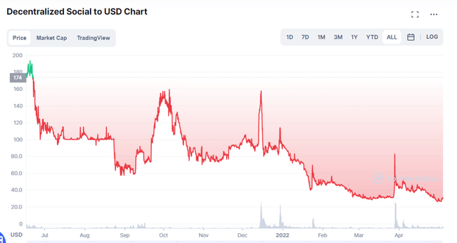 Graf vývoja projektu DeSo, zdroj Coinmarketcap