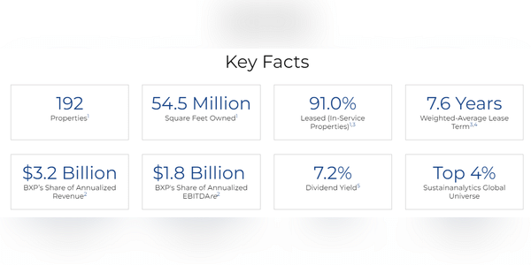 Boston Properties, Inc. neboli $BXP je REIT, který vlastní, provozuje a investuje do kancelářských a komerčních nemovitostí s vysokou přidanou hodnotou, především v Bostonu, New Yorku, San Francisku a Washingtonu, DC. Společnost byla založena v roce 1970 a je jedním z největších REITů v USA. BXP vlastní a provozuje v 192 nemovitostí s celkovou plochou přes 54 milionů čtverečních stop.
