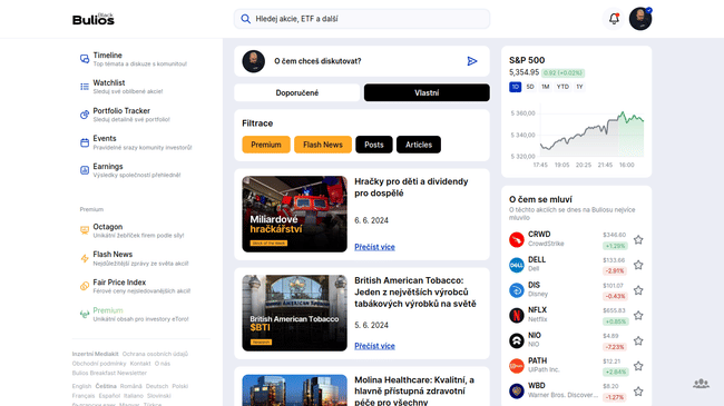 Postupně přidáme další filtry, včetně možnosti sledovat jen konkrétní akcie, např. na základě vlastního watchlistu.