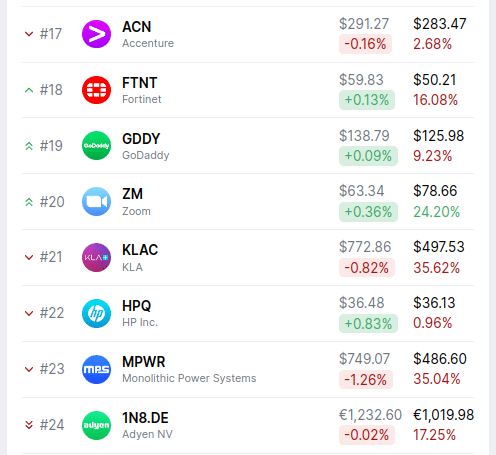 Nebo seřadit dle fair value ..., zde by možná bylo vhodnější Sector a Category hodit ze záhlaví do tabulky u firmy jako další sloupec (a pak mít možnost řadit, filtrovat dle těchto sloupců)